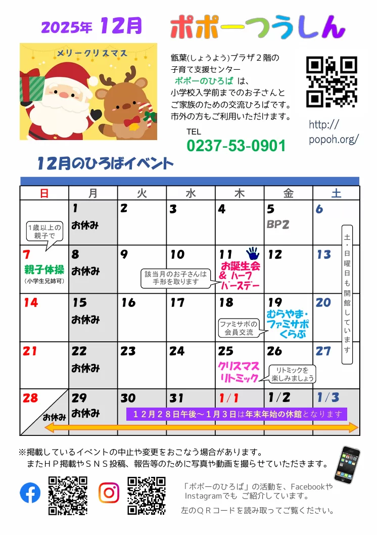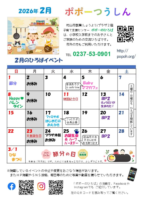 | お誕生会&ハーフバースデー | 毎月、ひろばにきた皆さんでお祝いをします。 未就園児の1.2.3歳と6ヶ月のお子さんには手形カードをプレゼントします。 |
