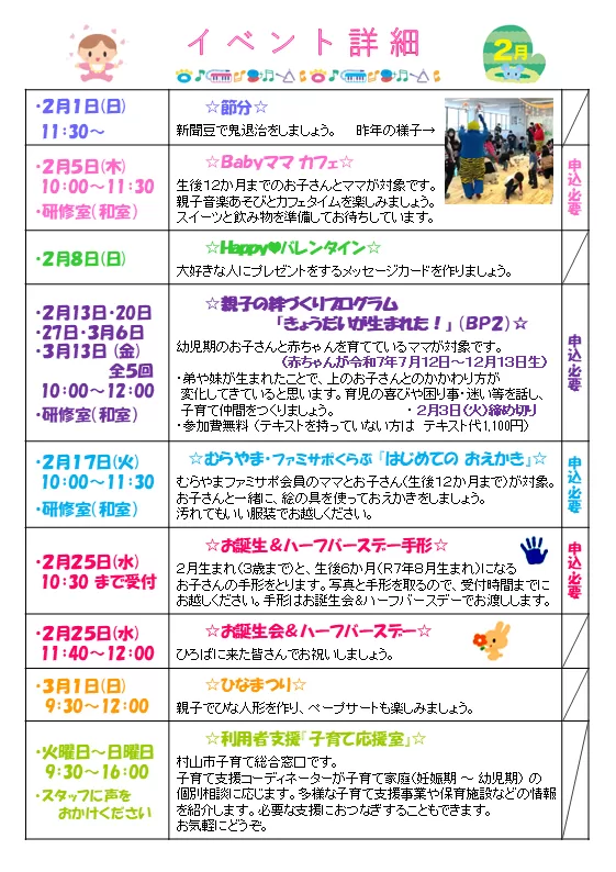 対象:未就学のお子さんと保護者 小学生の兄姉も参加できます